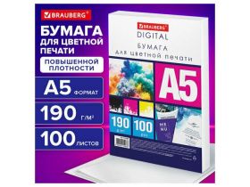 Бумага для цветной лазерной печати А5, плотная 235 г/м2, 100 л, BRAUBERG DIGITAL, 145% (CIE), 116410 251263829