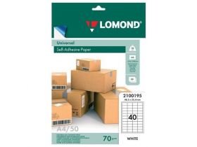 Этикетки самоклеящиеся Lomond, по 40 этикеток 48,5х25,4 мм на листе А4 , белая матовая, 50 листов, 2100195 1092704113