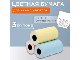 Термобумага цветная для мини-принтера, 3 рулона, набор бумаги 4425746551