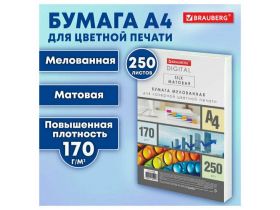 Бумага BRAUBERG DIGITAL SILK мел. матовая А4, 170г/м, 250л, д/полноцв. лазер. печати,130%(CIE),116398 894335204