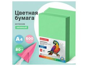 Бумага цветная BRAUBERG, А4, 80 г/м2, 500 л, интенсив, зеленая, для офисной техники, 115213 103809303754