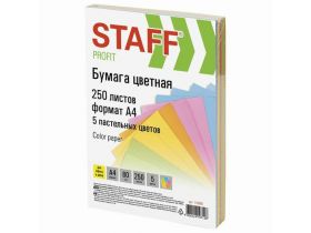 Бумага цветная А4 Staff color пастель, 5 цветов по 50 листов, 80 г/кв. м, 250 листов (110890), 5 уп. 102097487576