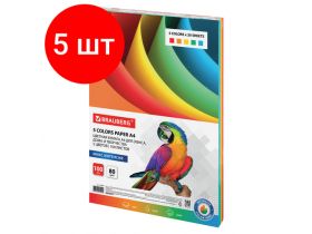 Комплект 5 шт, Бумага цветная BRAUBERG, А4, 80 г/м2, 100 л, (5 цветов х 20 л.), интенсив, для офисной техники, 112461 103305729610