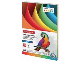 Бумага цветная BRAUBERG, А4, 80г/м, 100 л, (5цв. х20л), интенсив, для офисной техники, 112461 102810560328