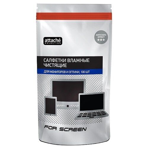 Салфетки влажные Luscan/Attache Selection For Screen для экранов сменный блок для туб (100 штук в упаковке).