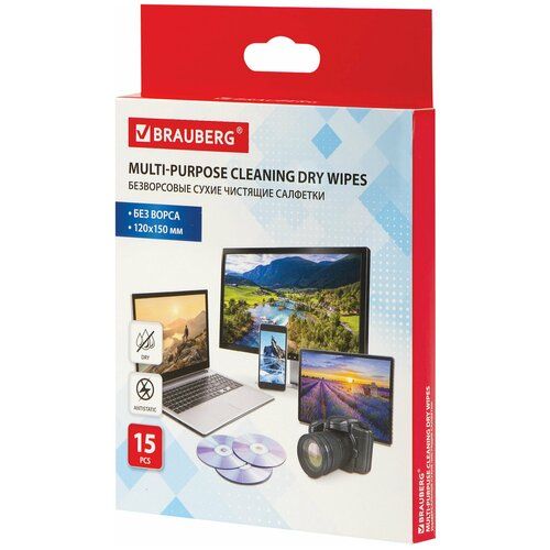 Найти - Салфетки Brauberg универсальные сухие безворсовые антистатичные, 120х150 мм, 15 шт, 513534