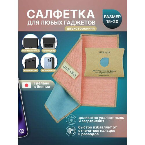 Найти - Двухсторонняя безворсовая салфетка для гаджетов 2in1 для очистки монитора, ноутбука, телевизора, планшета (Kоралловый и голубой)