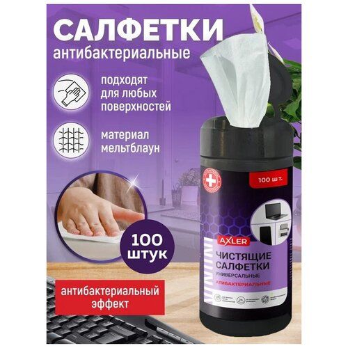 Найти - Антибактериальные салфетки для экранов всех типов и оптики AXLER в тубе, 100шт, влажные, для дисплеев и оптики
