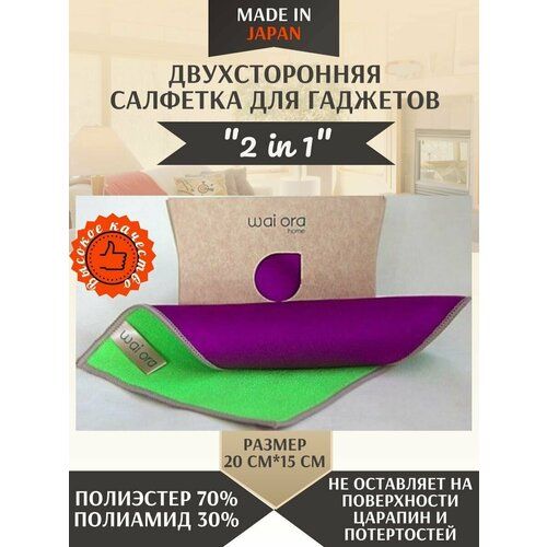 Найти - Салфетки для уборки wai ora, двухсторонняя салфетка для гаджетов 2 in 1, зеленый и фиолетовый, 20 см х15 см, 1 шт.