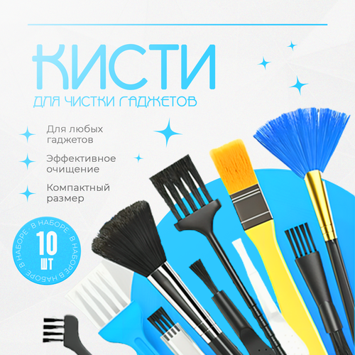 В набор входят 10 чистящих щёток, которые помогут вам поддерживать вашу технику в идеальном состоянии.