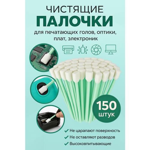 Очищающие палочки для печатающих голов с подушечкой (спонжем), изготовленной из безворсового материала премиум класса, обеспечивают оптимальное соотношение цены и качества. Одной палочки хватает на продолжительное использование.