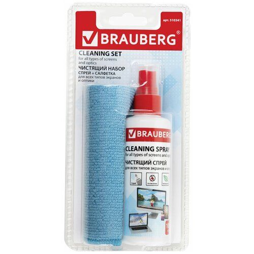 Чистящий набор BRAUBERG для ухода за экранами плазменных панелей, ЖК-мониторов, телевизоров и смартфонов легко удаляет пыль, отпечатки пальцев и другие загрязнения.