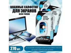 Влажные салфетки для экранов и мониторов всех типов OptiClean, 3 уп. по 90 шт. 102393356803