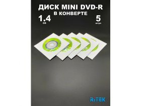 Диск mini DVD-R, диаметр 8 см, в конверте, 5 штук / Болванка для видеокамеры Ritek 1.4GB, 4x 4295786143