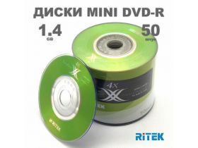 Диск mini DVD-R, диаметр 8 см, 50 штук в пленке / Болванка для видеокамеры Ritek 1.4GB SP50 bulk 50, 4x 103836499360
