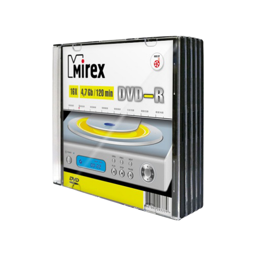 Диск DVD-R Mirex 4.7 ГБ 16x slim box UL130003A1F (5 штук в упаковке) Внешний вид и/или характеристики товара могут быть изменены производителем в соответствии с производственным процессом.