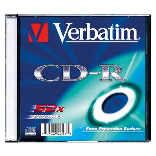 Оптические диски для записи VERBATIM CD-R 80 52x DL SL/200. СД диски в индивидуальном тонком кейсе. CD-R 12см 700МБ 52x Slim Case 200шт Verbatim Extra Protection. Компания Verbatim представляет вам свой оптический диск Verbatim CD-R 700 MВ, который поставляется в специальной пластиковой упаковке, способной защитить содержимое от большинства неблагоприятных внешних воздействий. Большой опыт создания подобной продукции помог данному производителю создать диск, который обладает по-настоящему отличными качествами. Данные качества в большинстве случаев характерны для продукции премиум-сегмента. Для полноценного использования данного типа носителя не требуются какие-либо специальные знания, поэтому с Verbatim CD-R 700 MВ сможет работать пользователь любого уровня. Использование прогрессивных технологий при разработке серии позволило достичь скорости записи 52x, что позволит работать с представленным оптическим диском на еще большей скорости. Сам диск имеет стандартные для оптических дисков размеры: его диаметр равен 12 см, поэтому вы сможете использовать его с большинством дисководов. Носители информации CD-R, 52x, Verbatim Extra Protection, Slim/3. Диск однократной записи CD-R. CD-R - это записываемый диск емкостью 700 МБ. В дисках Verbatim CD-R/RW используется технология MKM/Verbatim, обеспечивающая непревзойденное качество записи. Тесное сотрудничество отдела исследований и разработок компании Mitsubishi Chemical с производителями дисководов обеспечивает широкую совместимость дисков Verbatim, что делает их идеальными носителями для передачи компьютерных данных, домашних видеофильмов, фотографий и музыки. От европейского лидера в производстве записываемых носителей. Механические спецификации носителей Verbatim очень строги, поэтому записанные на эти носители данные могут считываться многими дисководами. Диски Verbatim совместимы с самыми разными дисководами, работающими на различных скоростях.