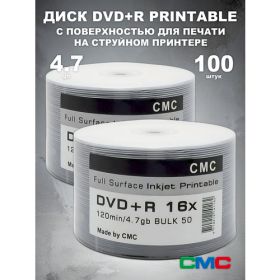 Найти - Диск DVD+R CMC Printable 100 штук / Болванка 4.7GB, 16x, с поверхностью для струйной печати