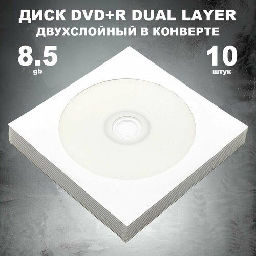 Найти - Диск DVD+R двухслойный 8.5GB 8x в конверте, 10 штук / Болванка DVD+R DL Dual Layer (Double Layer) CMC