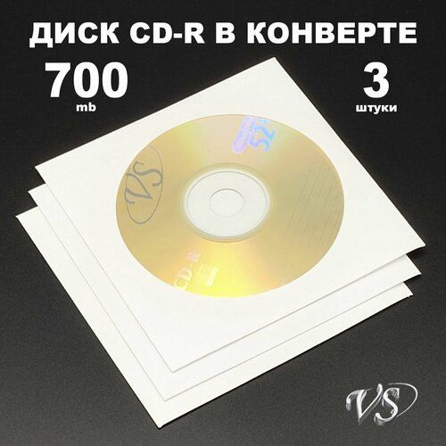 Найти - Диск CD-R 700MB 52x в конверте, 3 штуки / Болванка CD-R VS