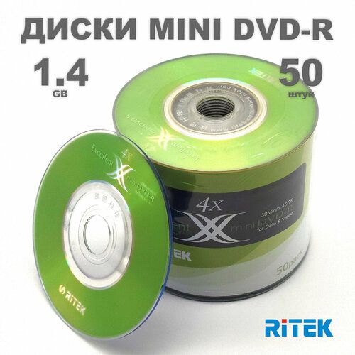 Найти - Диск mini DVD-R, диаметр 8 см, 50 штук в пленке / Болванка для видеокамеры Ritek 1.4GB SP50 bulk 50, 4x