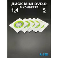 Диск mini DVD-R, диаметр 8 см, в конверте, 5 штук / Болванка для видеокамеры Ritek 1.4GB, 4x 4295786143