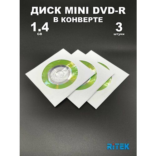 Найти - Диск mini DVD-R, диаметр 8 см, в конверте, 3 штуки / Болванка для видеокамеры Ritek 1.4GB, 4x
