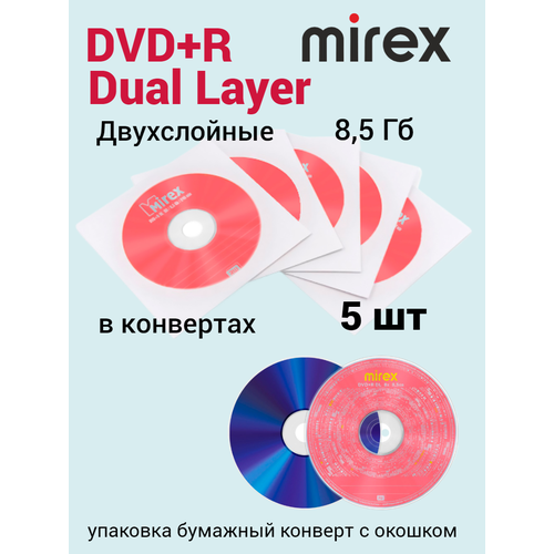 Найти - Диски Mirex Комплект 5 дисков DVD+R 8.5 Gb Dual Layer 8x в бумажный конвертах (UL130062A8C)