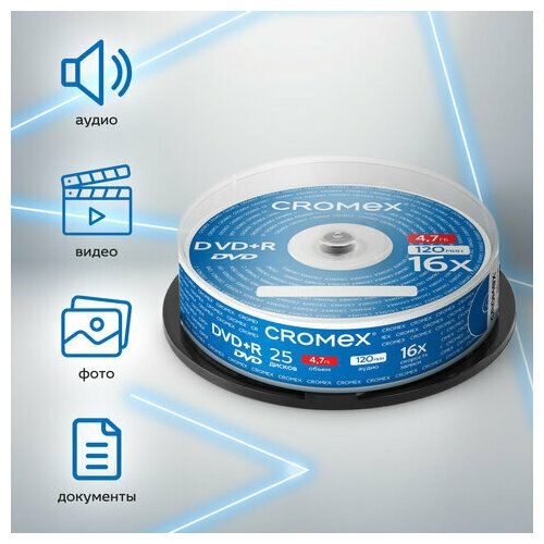 НАЙТИ ВЫГОДНЕЕ - Диски DVD+R (плюс) CROMEX, 4,7 Gb, 16x, Cake Box (упаковка на шпиле), комплект 25 шт, 513777