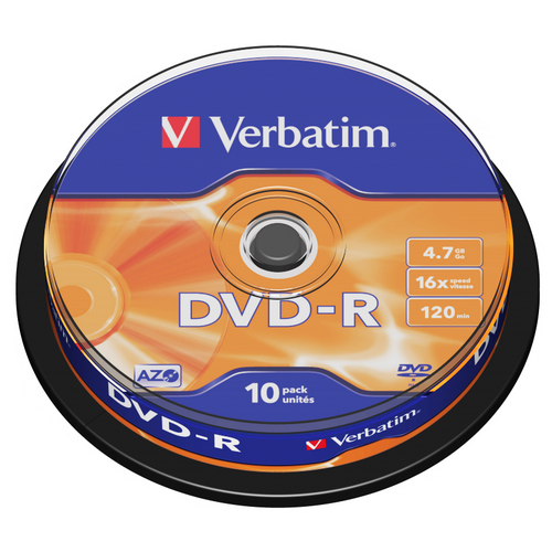 Диск DVD-R 4.7ГБ 16x Verbatim "43523", пласт.коробка, на шпинделе (10шт./уп.)