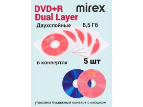 Диски Mirex Комплект 5 дисков DVD+R 8.5 Gb Dual Layer 8x в бумажный конвертах (UL130062A8C) 4571768481