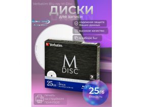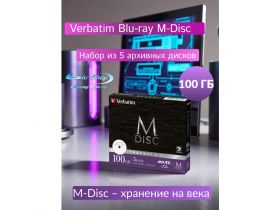Диски чистые Verbatim Blu-ray M-DISC BDXL 2-4X, 100GB, Slim Case, 5 PACK, Inkjet Printable 103542684530