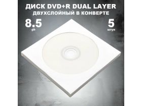 Диск DVD+R двухслойный 8.5GB 8x в конверте, 5 штук / Болванка DVD+R DL Dual Layer (Double Layer) CMC 103153989588