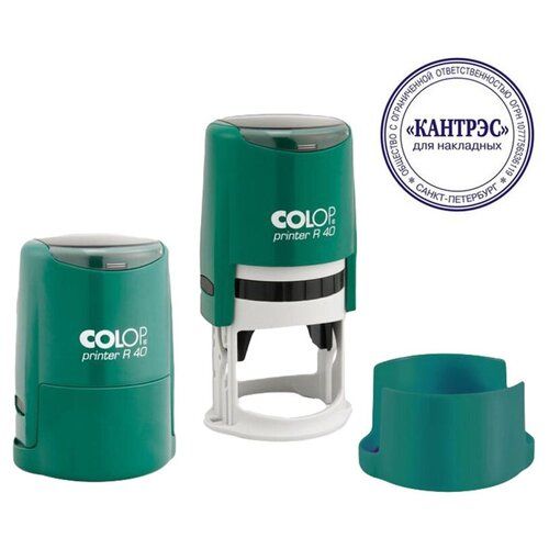 Оснастка для печати круглая Colop Printer R40. Надежный пластиковый корпус бирюзового цвета с автоматическим окрашиванием текста. Диаметр оттиска - до 41,5 мм. Нижняя крышка позволяет блокировать корпус в сложенном компактном виде, защищает клише. Используется для основных или дополнительных печатей организации. В комплекте: оснастка, нижняя крышка, синяя сменная подушка E/R40, демпферный слой для крепления клише, наклеен на текстовую площадку. Клише заказывается отдельно. Внимание Все сменные штемпельные подушки, которыми комплектуется продукция Colop, заправлены краской Noris (Германия) на водной основе с добавлением глицерина и предназначены для проставления оттисков на бумагу и пористые поверхности. При необходимости проставления оттисков спиртсодержащей краской при помощи автоматической оснастки, стандартную подушку, идущую в комплекте, необходимо заменить на специальную совместимую со спиртосодержащими красками, во избежание затвердевания подушечного материала. Заказывается индивидуально.