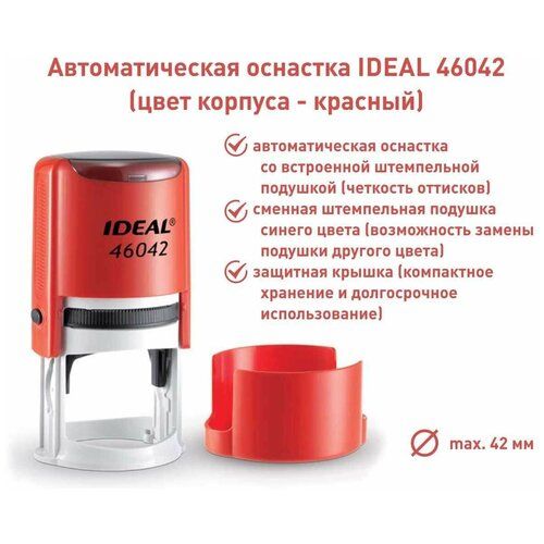 Найти - Оснастка для печатей d-42мм цвет оттиска синий TRODAT IDEAL 46042 крышка, подушка в комплекте корпус красный