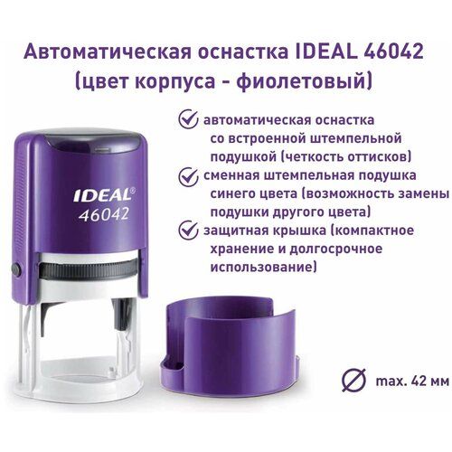 Найти - Оснастка для печатей d-42мм цвет оттиска синий TRODAT IDEAL 46042 крышка, подушка в комплекте корпус фиолетовый