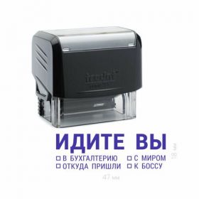 Прикольный штамп "Идите вы: в бухгалтерию / откуда пришли / с миром / к боссу" - идеальное решение для разнообразия жизни в офисе и быстрой подписи документов