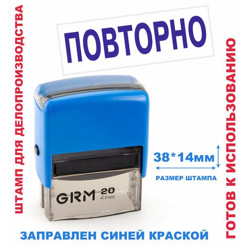 Штамп стандартный GRM 20 Office позволяет получить оттиск со словами «повторно».