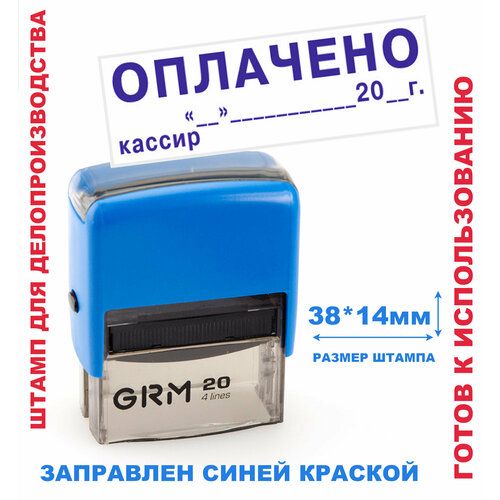 Штамп стандартный GRM 20 Office позволяет получить оттиск со словами «оплачено, кассир, дата».