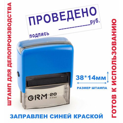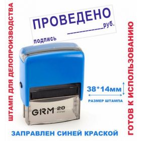 Штамп стандартный GRM 20 Office позволяет получить оттиск со словами «проведено, подпись».