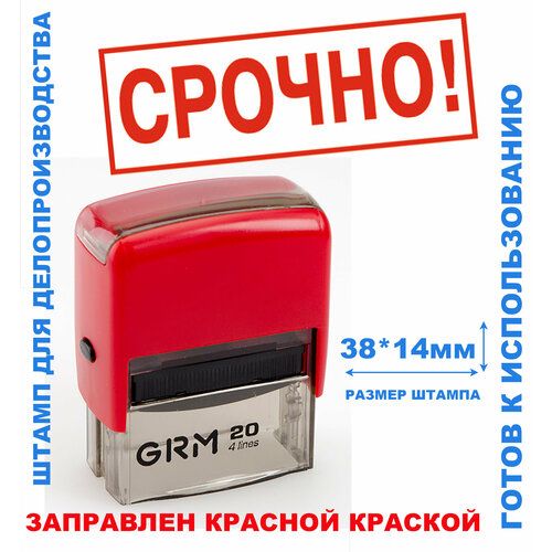 Штамп стандартный GRM 20 Office позволяет получить оттиск со словами «срочно штамп, красная сменная штемпельная подушка.