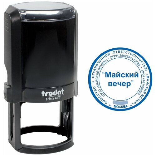 Найти - Оснастка для печатей оттиск D=42 мм синий, TRODAT 4642 PRINTY 4.0, корпус черный, крышка, подушка