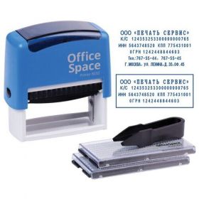 Самонаборный автоматический пластиковый 6-строчный штамп OfficeSpace. 4 строки при использовании с рамкой (в комплекте). Размер оттиска 70*32 мм, оснастка с рифленой пластиной. Автоматическое окрашивание. В комплекте пинцет, 2 кассы букв, цифр и символов (3мм и 4мм) и сменная штемпельная подушка (срок годности сменной подушки – 6 лет, дата изготовления указана на упаковке). Символы надежно закрепляются в текстовой пластине (две ножки). При замене рекомендуется заменить подушку. Используется для набора штампов с почтовыми, банковскими реквизитами и другой меняющейся информацией. Усиленные двойные стенки выкатного механизма. Резиновые подушечки. Долговечность благодаря металлической втулке. Упаковка – блистер с европодвесом.