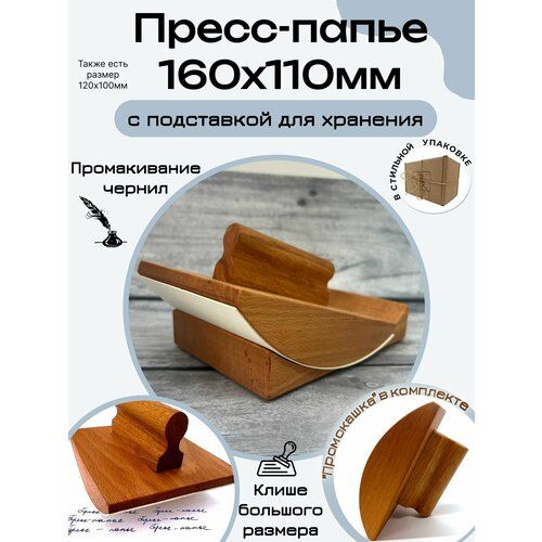 Пресс-папье 160х110мм с подставкой - удобный и стильный аксессуар для вашего рабочего стола. Пресс-папье выполнен из высококачественной породы дерева- бука, обеспечивая прочность и долговечность изделия. Поверхность качественно прошкурена, без задиров, шероховатостей, без использования лакокрасочных материалов.