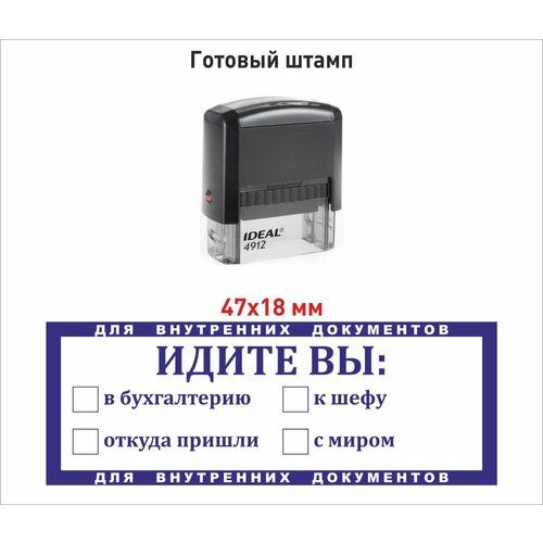 Штамп для руководителя, начальника, друга Оригинальный подарок руководителю, начальнику, директору или приятелю. Штамп добавит много положительных эмоций в вашу жизнь, особенно на работе. Клише изготовлено из резины на автоматической оснастке со встроенной и заправленной штемпельной подушкой краской на водной основе. Размер штампа (оттиска) - 18х47 мм. Цвет оттиска - синий. Предназначен для проставления оттиска на бумаге в юмористической форме в качестве розыгрыша. Отличный корпоративный подарок директору, подарок руководителю, подарок боссу, начальнику подарок, подарок начальнице, подарок учителю, коллеги подарок, подарок для учителя, друга черный. Тип упаковки: картонная коробка.