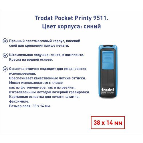 Найти - Trodat Pocket Printy 9511 Карманный штамп 38х14мм синий, подушка синяя