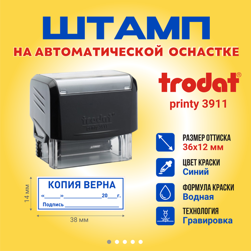 Штамп на автоматической оснастке с фразой "Копия верна" это надежный инструмент поможет вам быстро и эффективно заверять документы, экономя драгоценное время. Компактный размер (38х14 мм) делает его идеальным выбором как для офисного стола, так и для работы «в поле». Прочный пластиковый корпус гарантирует долгий срок службы даже при активном ежедневном использовании, а замену штемпельной подушки можно произвести буквально за минуту благодаря продуманному механизму. Отсутствие необходимости вручную набирать тексты – еще одно значительное преимущество данного штампа перед аналогами. местом под дату и подпись заверителя", для документов. Штамп оснащен автоматической оснасткой со встроенной штемпельной подушкой для удобного использования в повседневной работе.