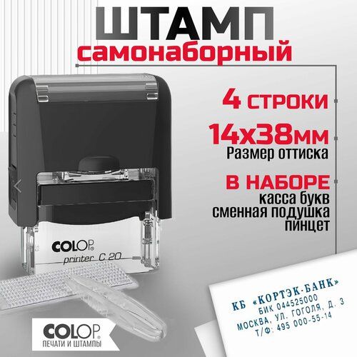 Найти - Штамп самонаборный автоматический Colop C20-Set 4 строки 38х14мм для работы с документами