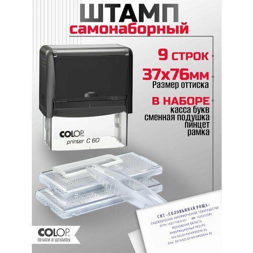 Найти - Штамп самонаборный Colop C60-Set-F, 9/7 строк и рамка, 37х76 мм, 2 кассы, корпус черный