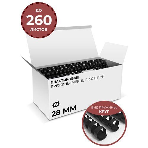 Пружины пластиковые для переплета гелеос, 28 мм (260 листов), чёрные, 50 шт.